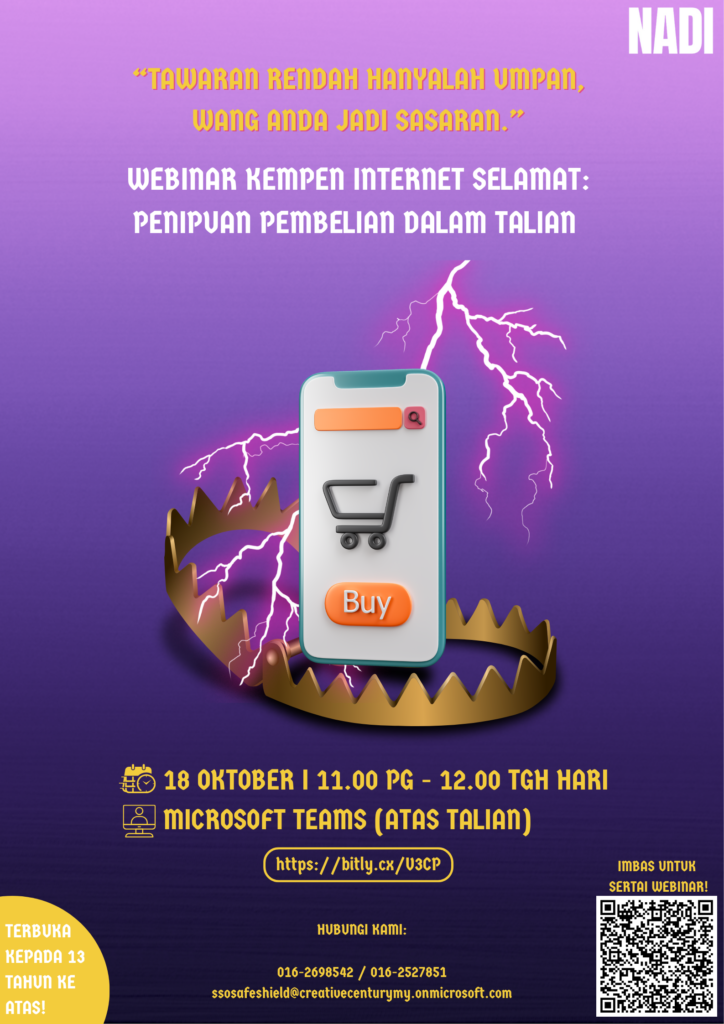 KEMPEN INTERNET SELAMAT : PENIPUAN PEMBELIAN DALAM TALIAN – TAWARAN RENDAH HANYALAN UMPAN, WANG ANDA JADI SASARAN