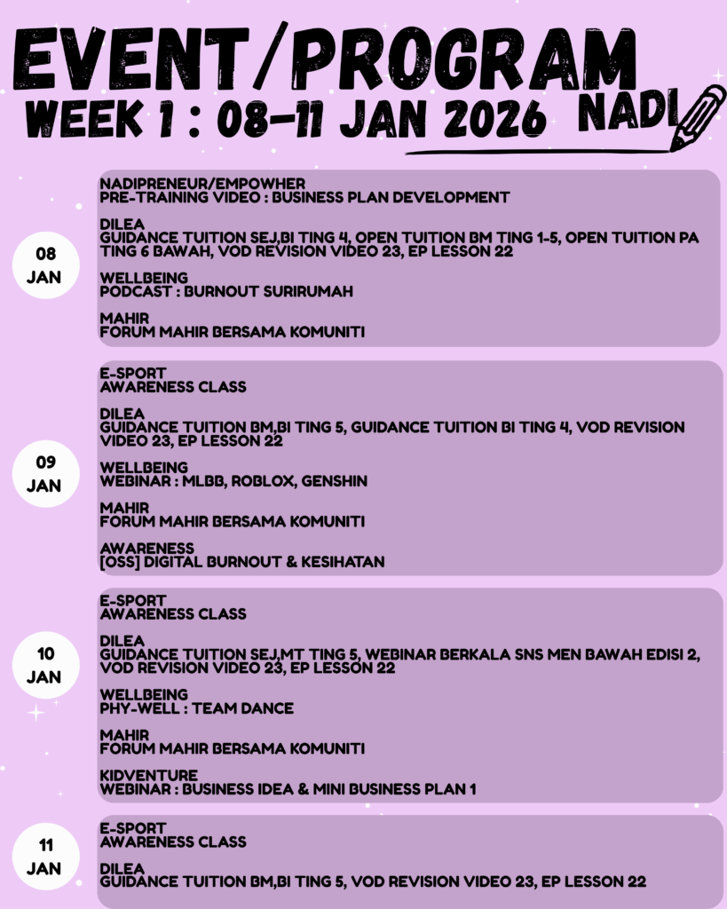 PROGRAM MINGGU 1 08-11 JAN 2026